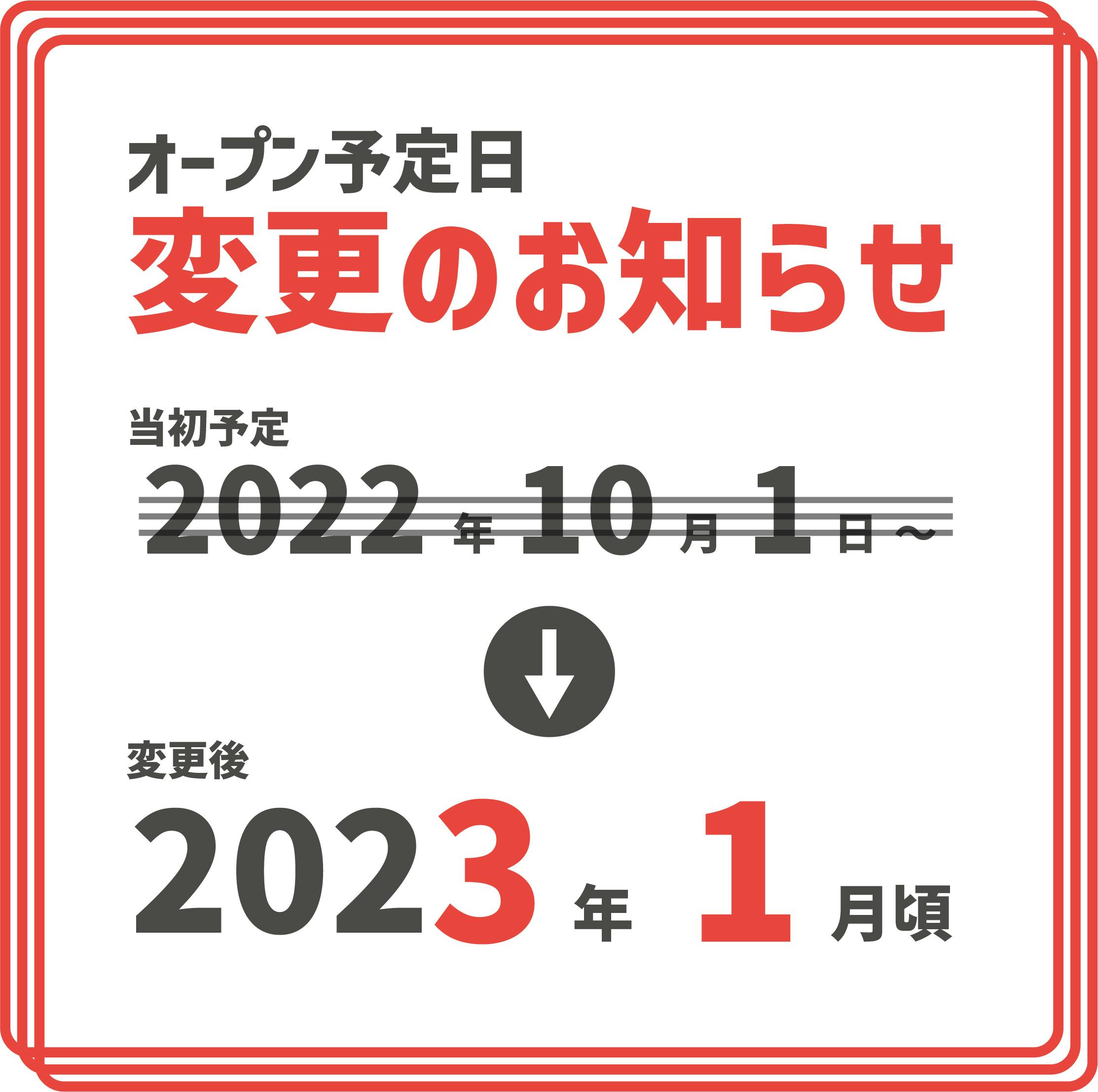 オープン予定日変更のお知らせ【変更後→2023年1月頃オープン予定】