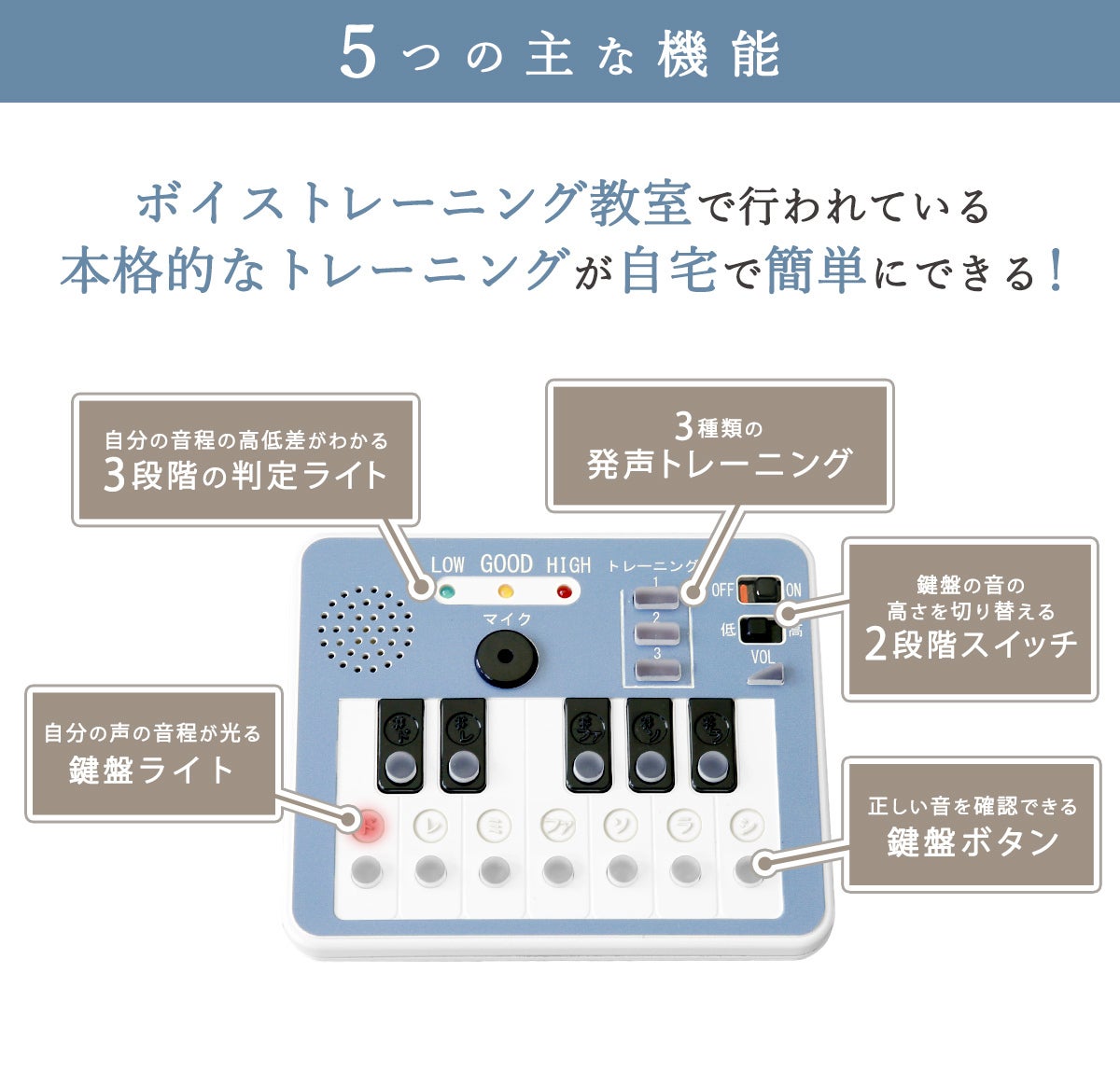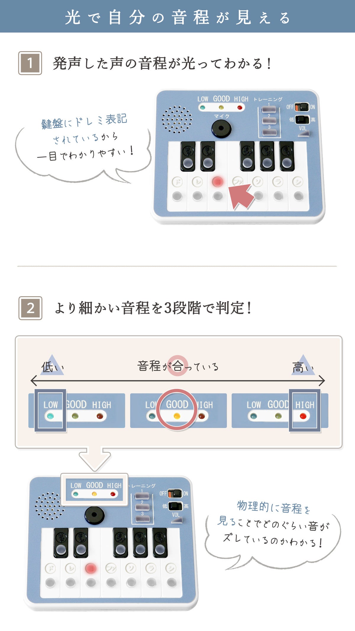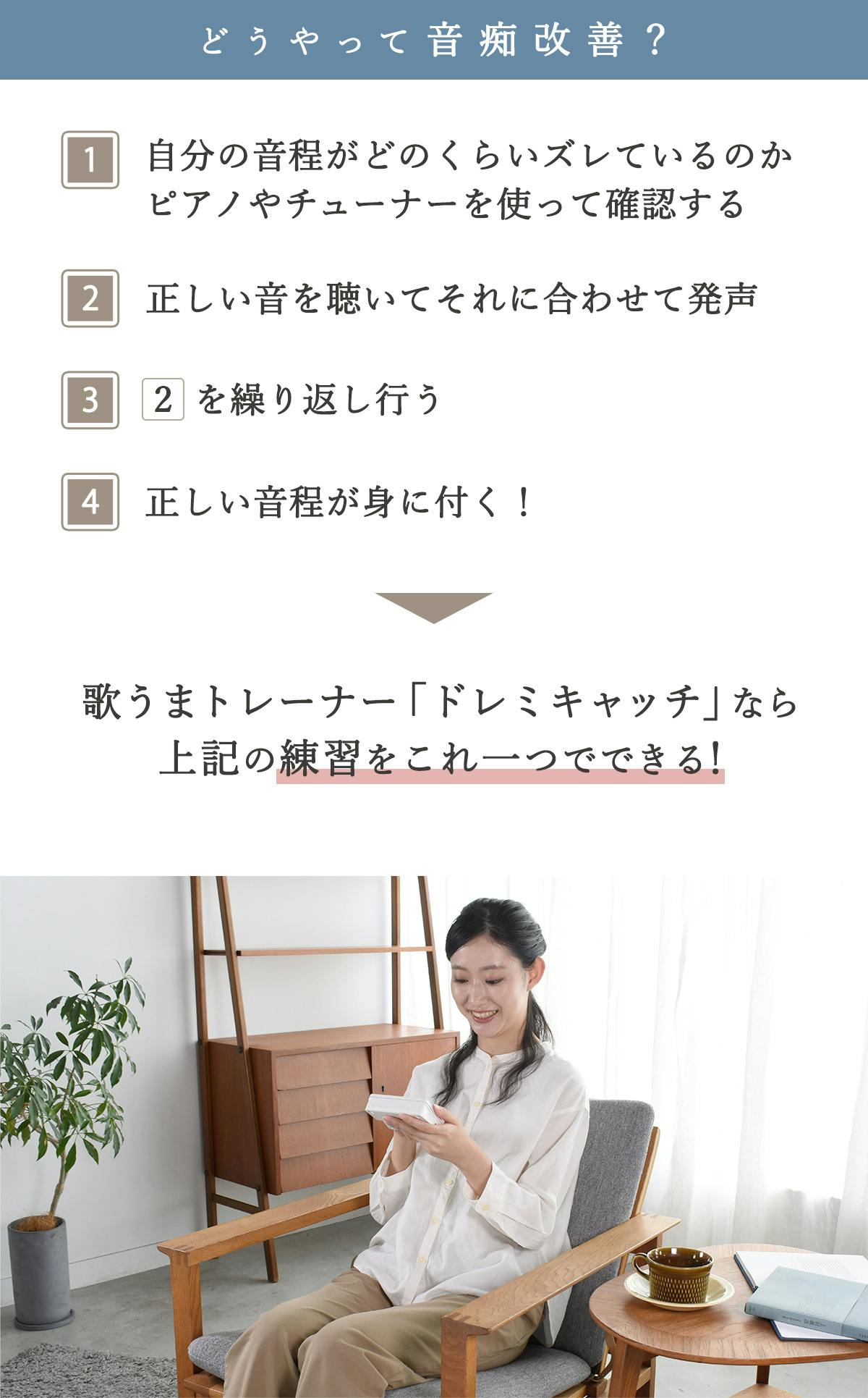 歌うまトレーナー「ドレミキャッチ」は “歌うことが苦手な人のため” のボイストレーニンググッズです。