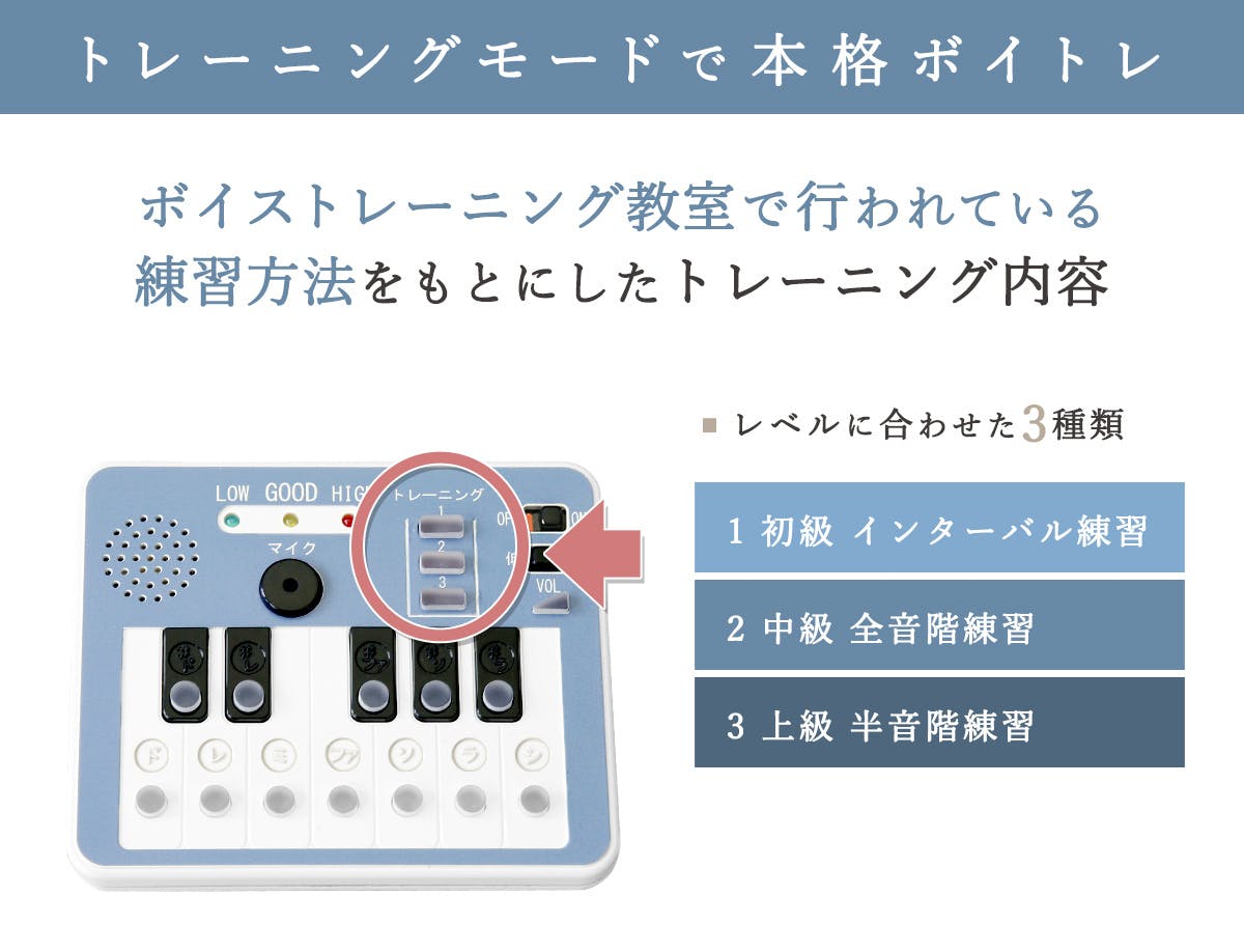 ボタンを押すとトレーニング音が流れるので、その音に続いて発声練習を行います。