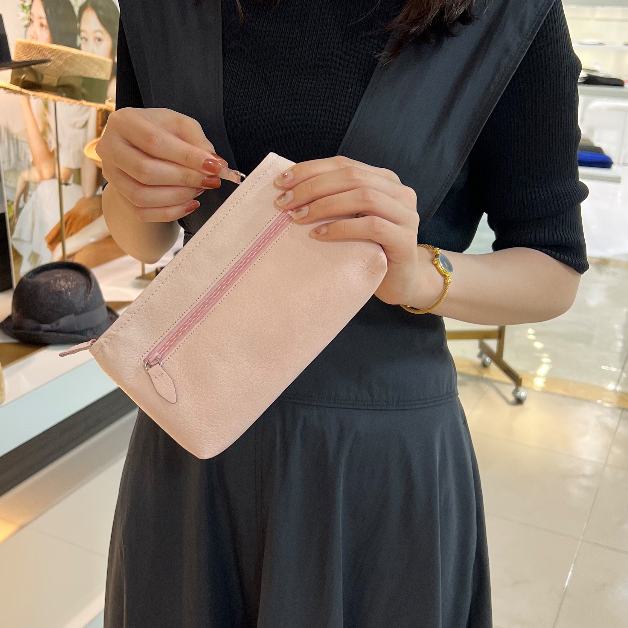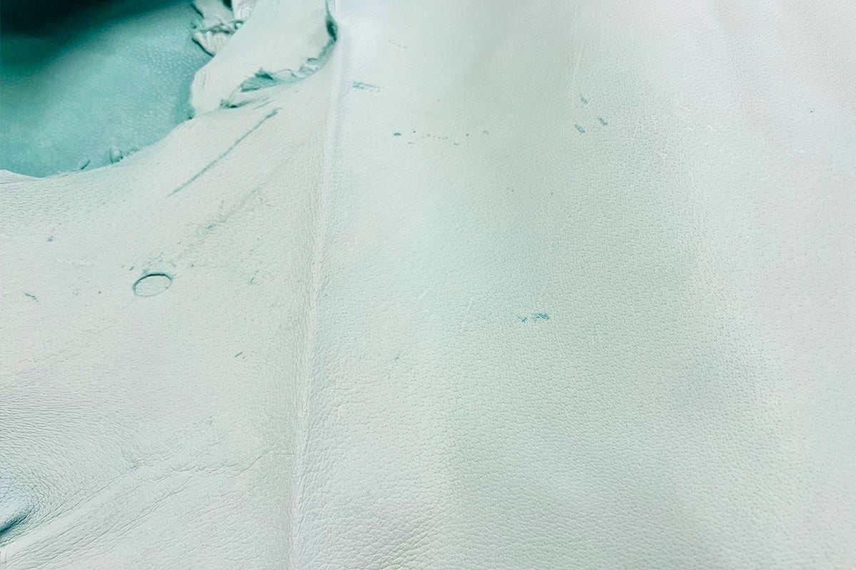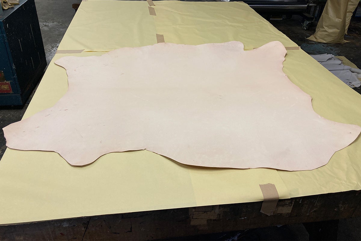 豚革は、繊維のキメが細かいことで繊細な色の表現が可能で、淡い色味が実現しました。
