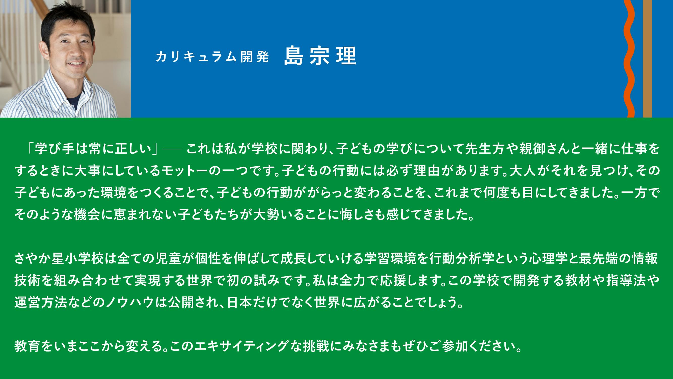 設立者/理事長およびカリキュラム開発者のプロジェクトにかける想い