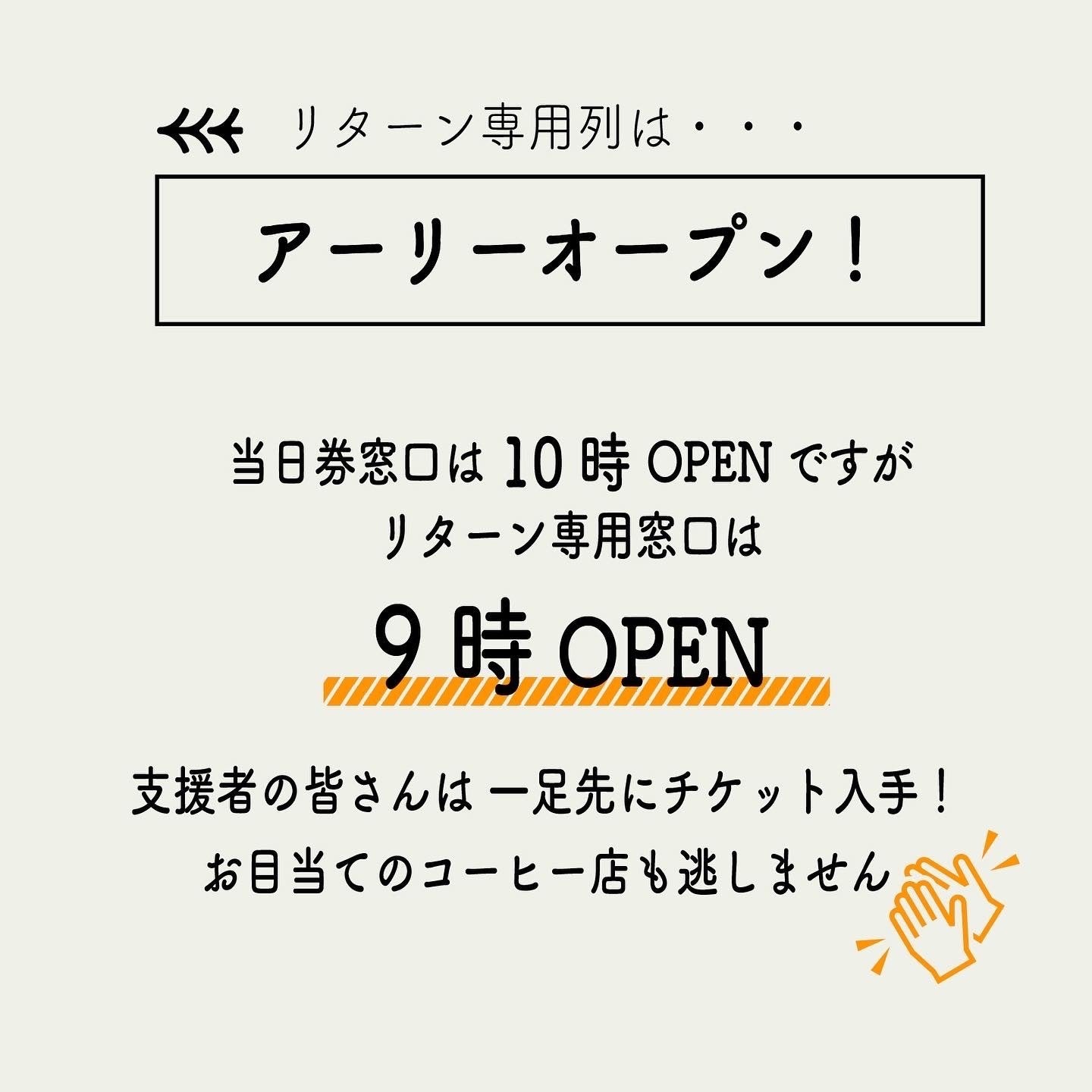 急遽決定したのですが、通常10時オープンのところ、クラファン支援者限定で9時にチケット交換窓口をオープンします!