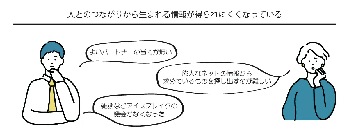 最近「新規事業を共に進めるパートナーを探したい」だったり、「特定の分野に詳しい人から話を聞きたい」という声をよく耳にします。