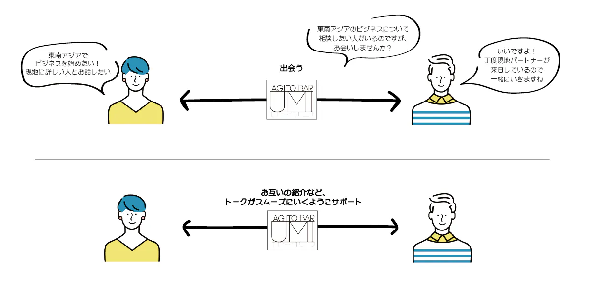 相談を受けたスタッフは、自分の伝手やバーのお客様の中から力になれそうな人を探し顔合わせをセッティング。