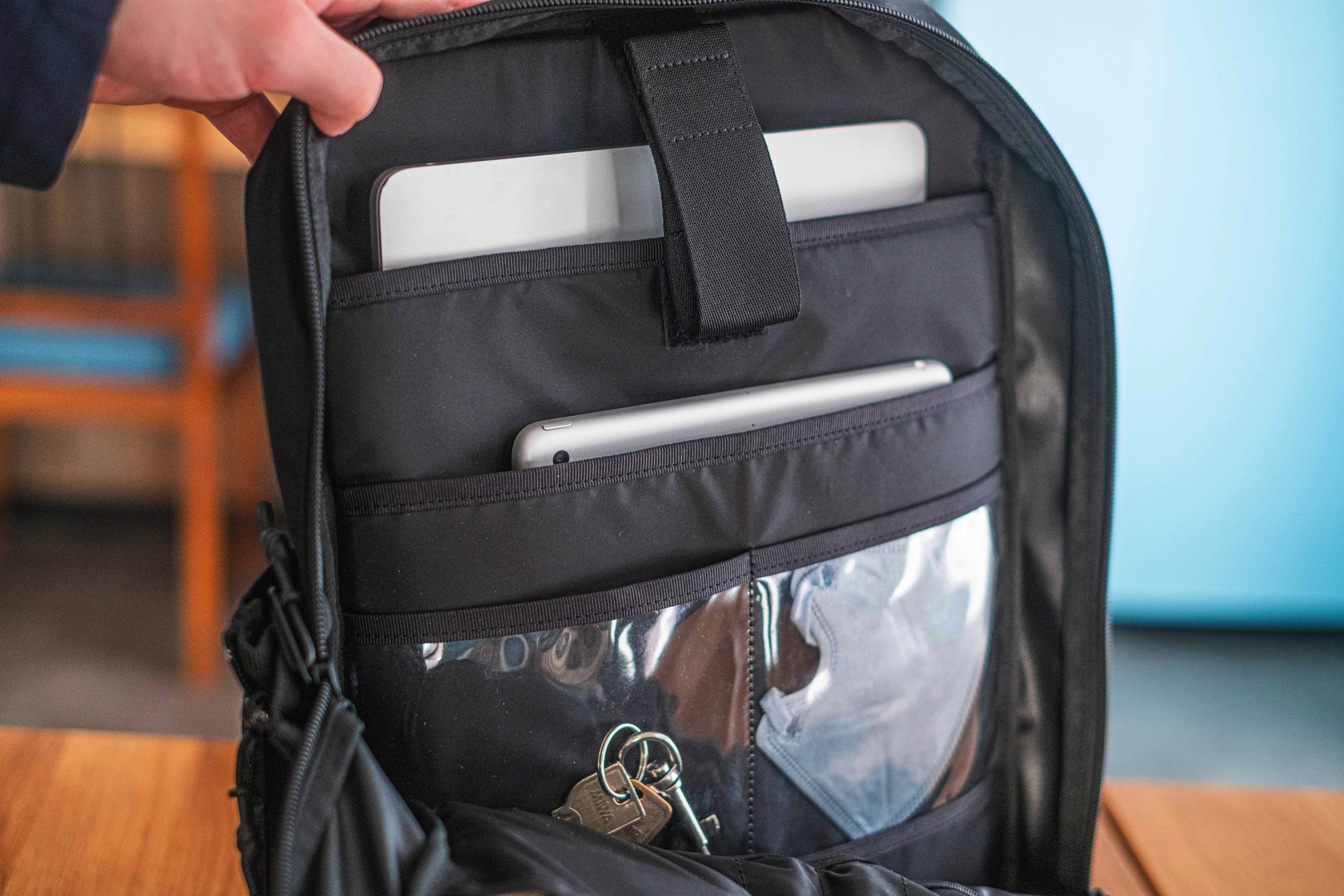 メイン収納部には、16インチまでのPCやタブレット、A4サイズの書類などを収納できるスリーブを用意。