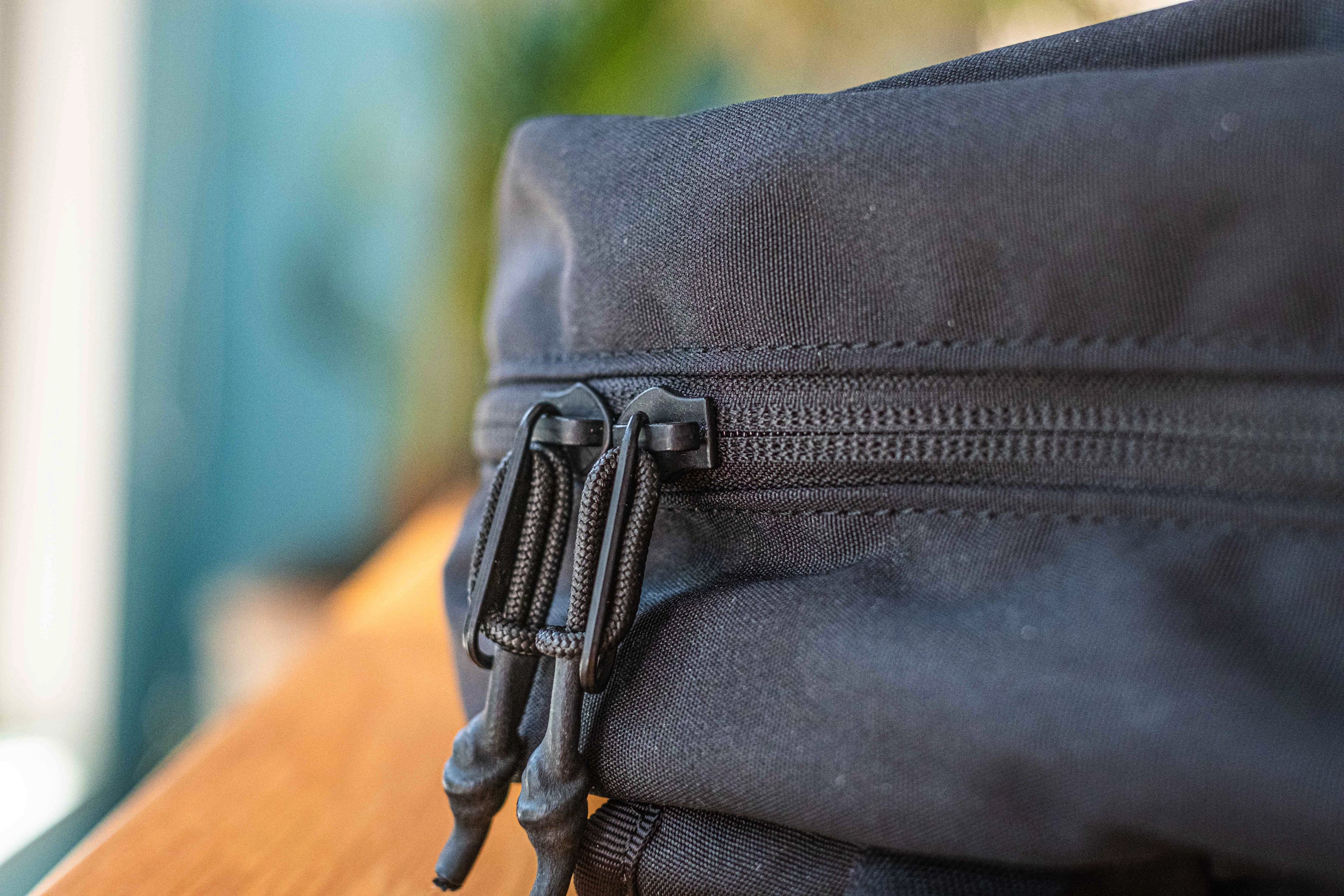 滑らかに開閉するメイン収納部のファスナーには、2つの持ち手を配置しています。