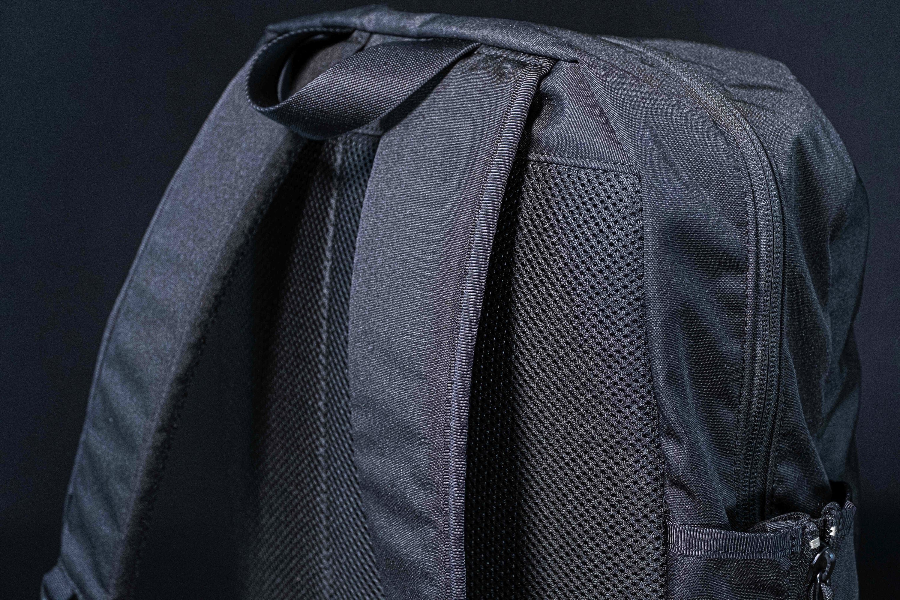 ショルダーストラップとバックパック背面にはクッション&エアメッシュが配されており、暑い時期に長時間持ち運んでも快適です。