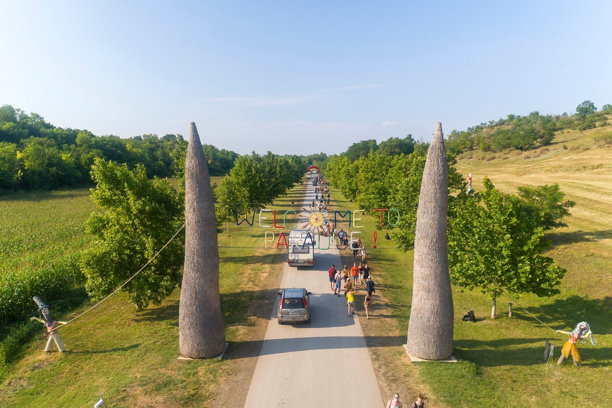 OZORAフェスティバル全景 - Photo by Pawel Wieloch会場はハンガリーの首都・ブタペストから150kmほど離れたトウモロコシやヒマワリの畑に囲まれた広大な牧草地の谷で、1999年の皆既日食のパーティー「Solipse」を発端としてスタートしました。その土地に根を張り、今年で23年目を数える世界屈指の音楽フェスティバルです。ヨーロッパを中心に、世界中から毎年4万人近い人が集い、1週間に及ぶ共同生活をしながら互いの人生を祝福しあいます。