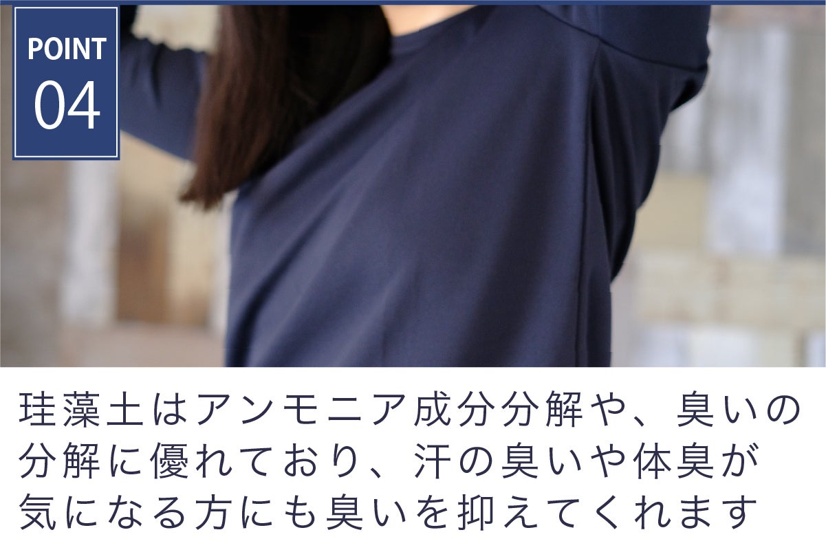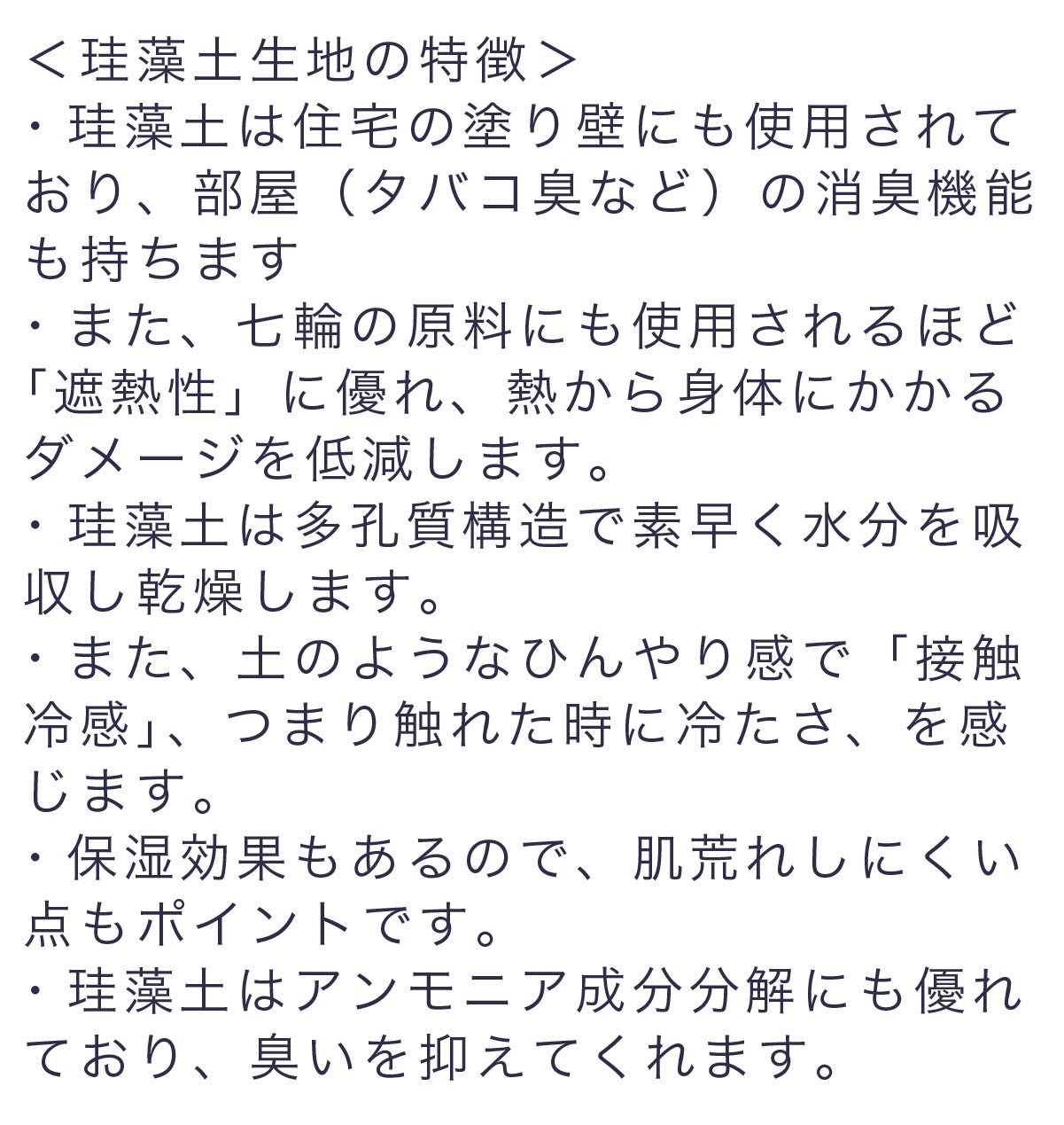 サラサラインナー「サラピック」の最大の特徴は「珪藻土を使用している」点。実は珪藻土には、水分を吸収する以外にも、消臭効果、断熱効果、接触冷感機能、保湿効果があります。高機能の珪藻土を使用してできた生地でうまれたのが、この「サラピック」です。