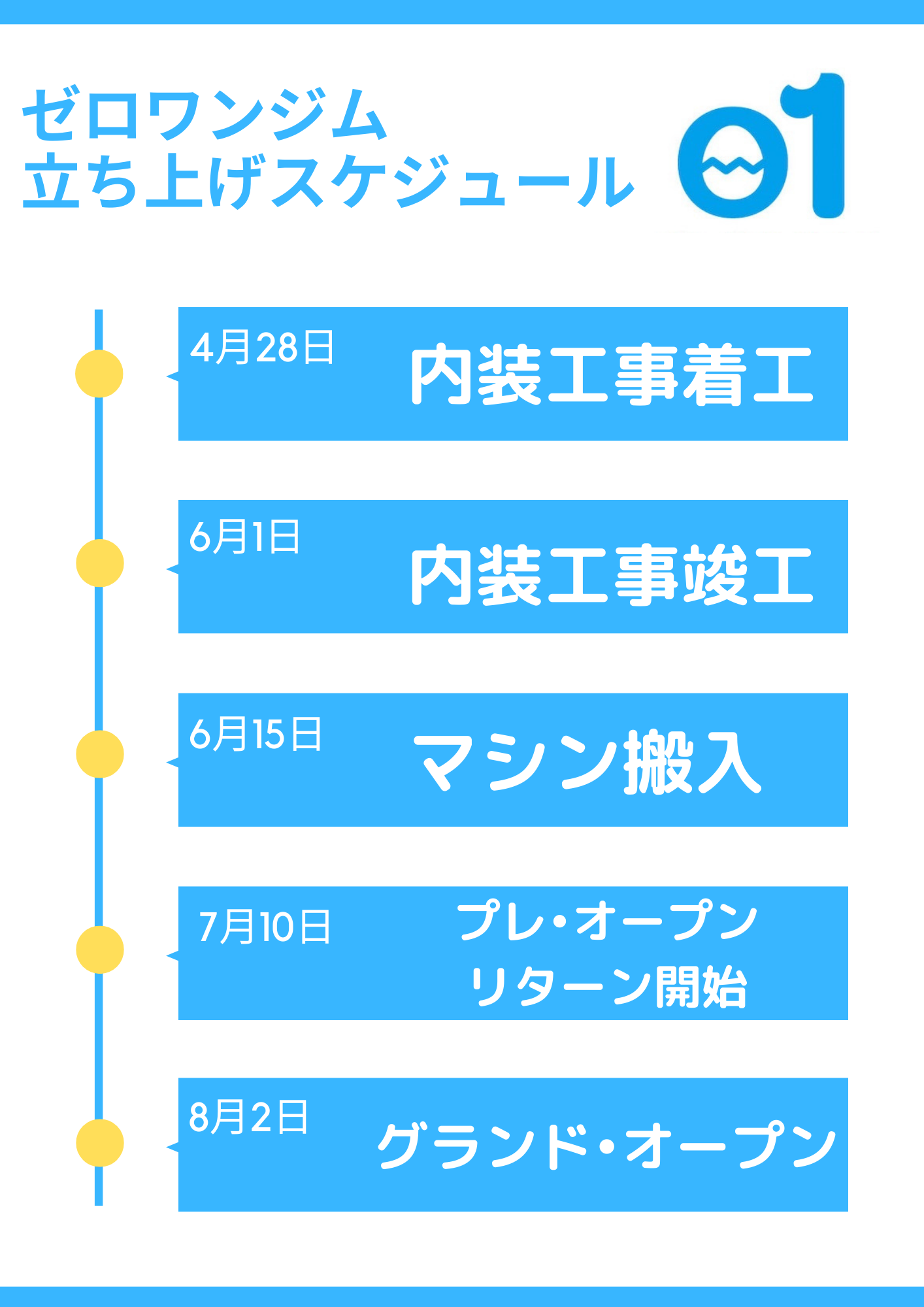 ゼロワンジム立ち上げのスケジュールは下記の通りです。