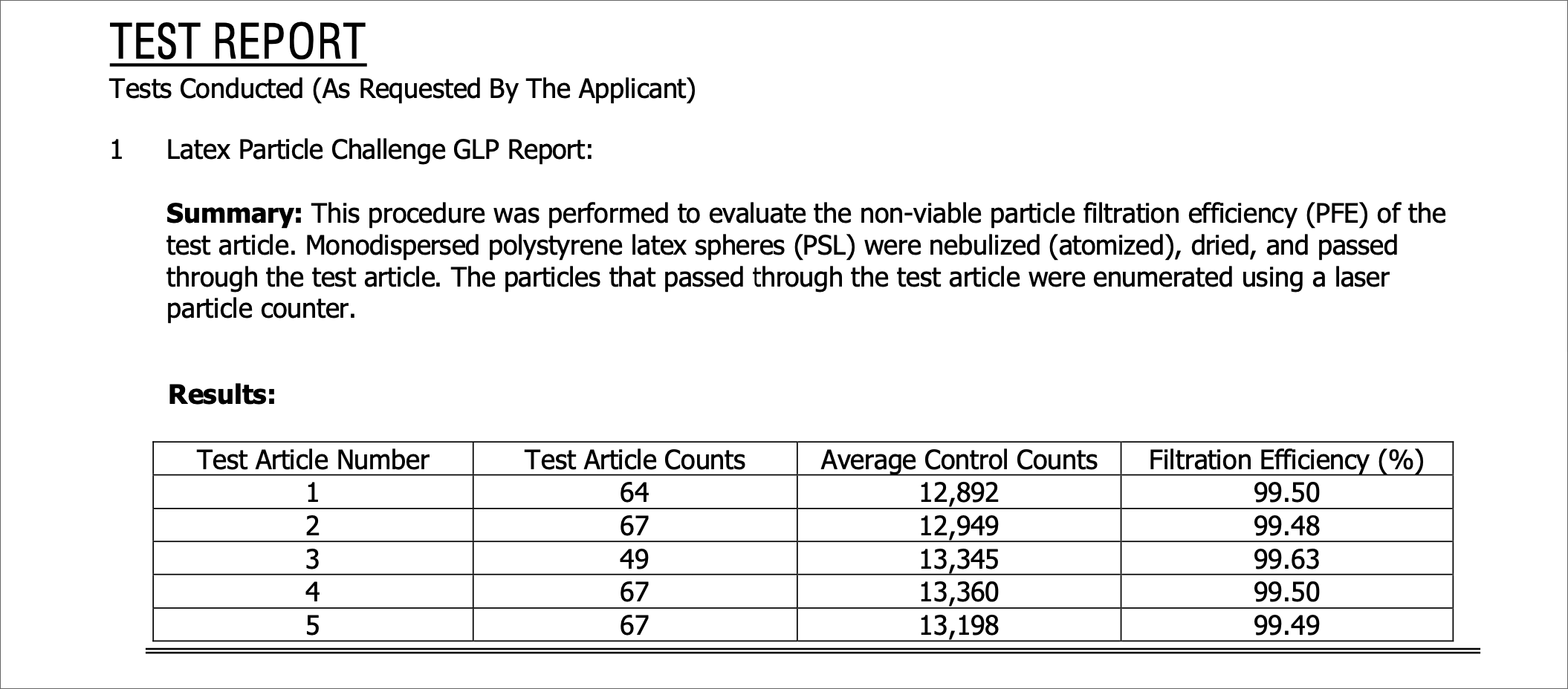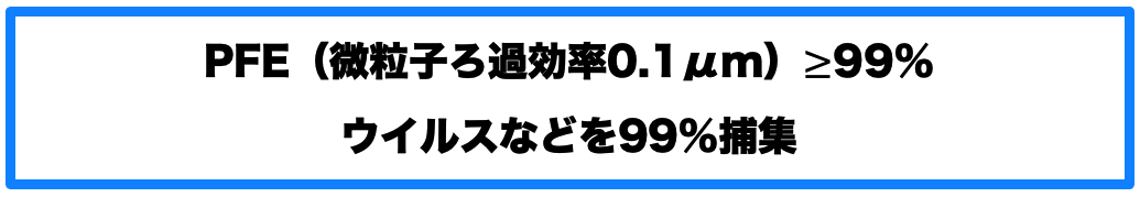 PFE(微粒子濾過効率)≥ 96.40%