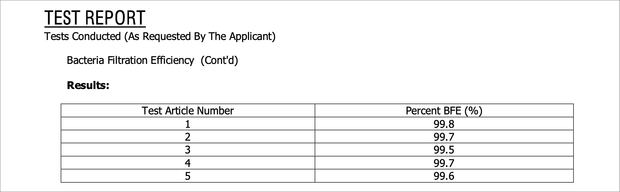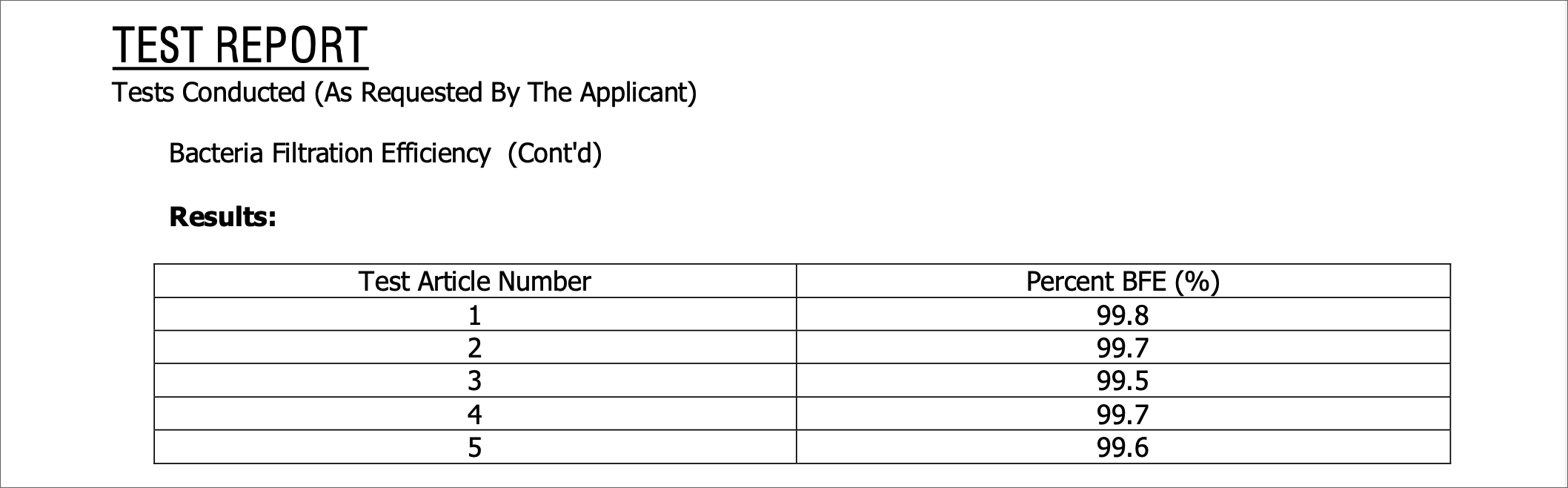 BFE(細菌濾過効率) ≥ 95.84%