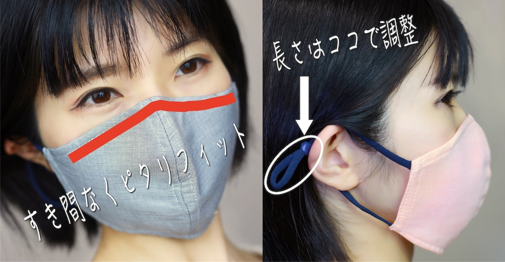 ひもの長さが調整可能です。マスクがズレてしまうストレスはありません。