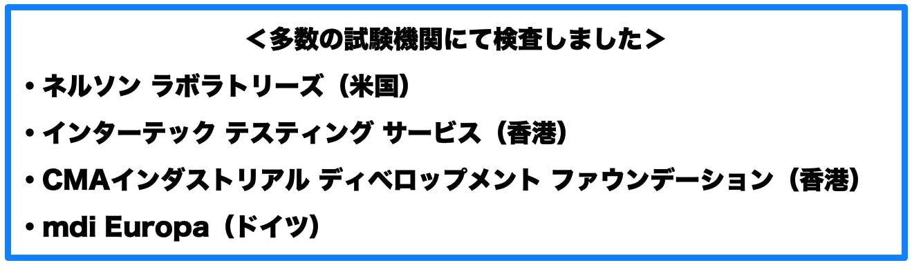 検査実施機関:インターテック テスティング サービス(2020年香港 https://www.intertek.com.hk/)