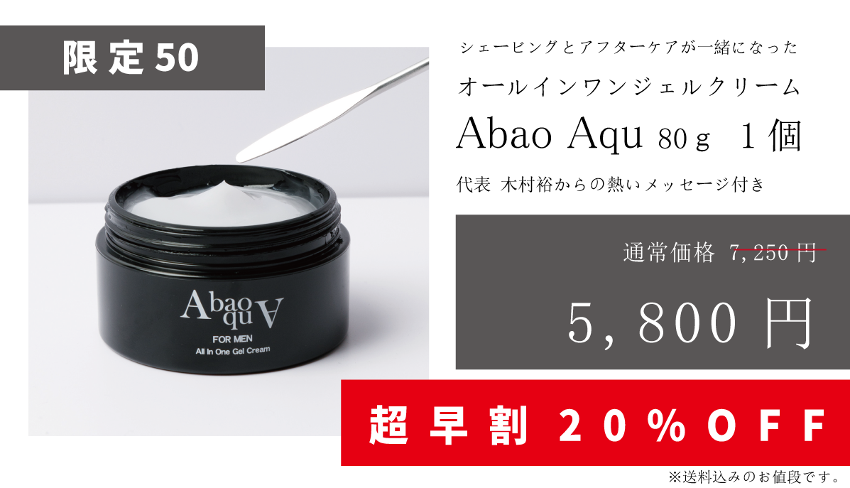 Abao-Aqu(ア・バオ ア・クー)オールインワンジェルクリームは、こうしたお悩みを持つ方に向けて開発されたシェービング&アフタースキンケア用のジェルクリームです。