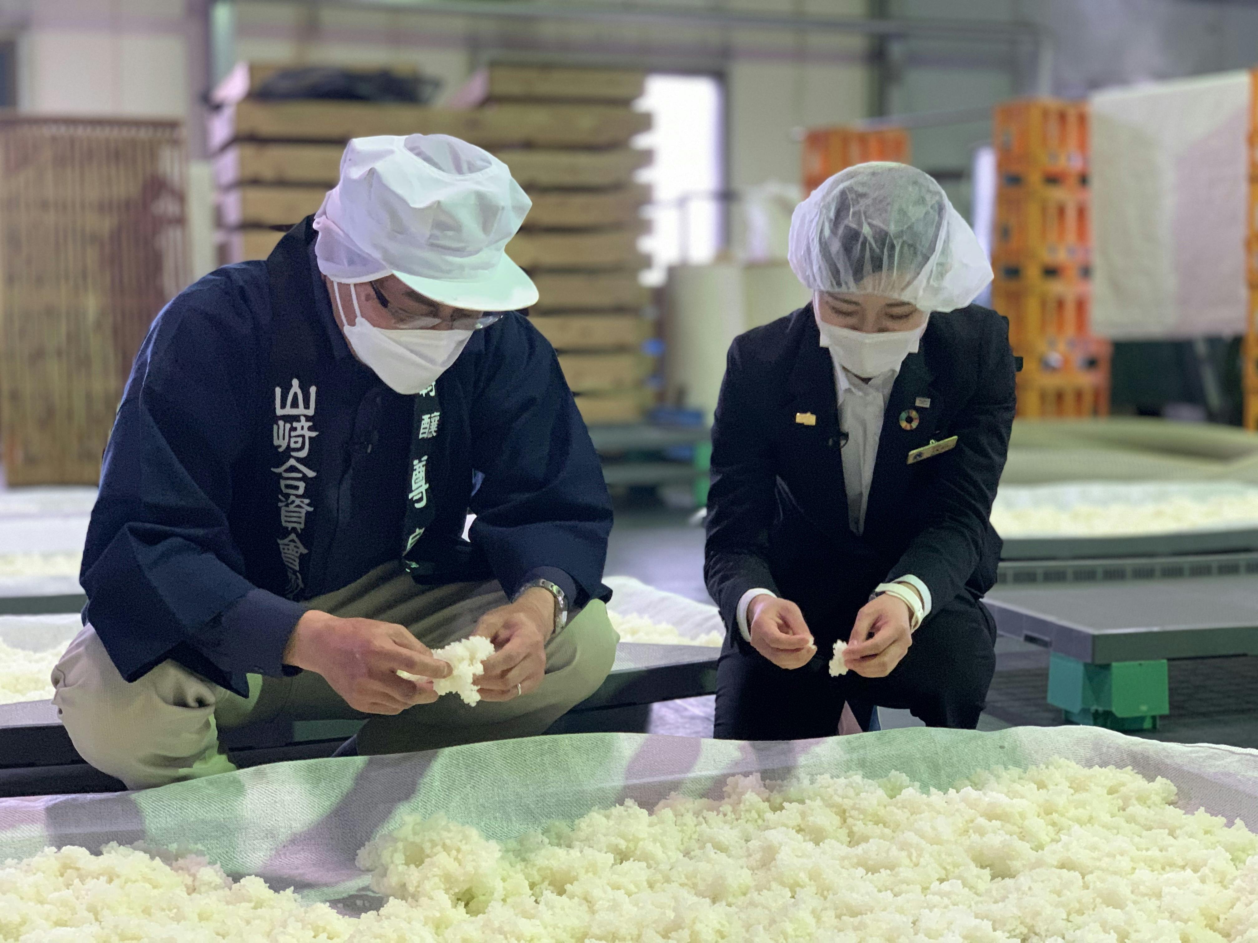 山﨑合資会社様の酒蔵に訪問し、日本酒造りの各工程の見学をさせて頂いたりもしました。
