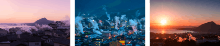 また、大地から立ちのぼる「湯けむり」は別府を象徴する風景として