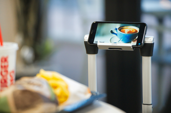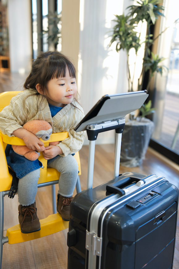 LiJスーツケースなら、スマホ・タブレット・ゲームを置いてハンズフリーで視聴可能。