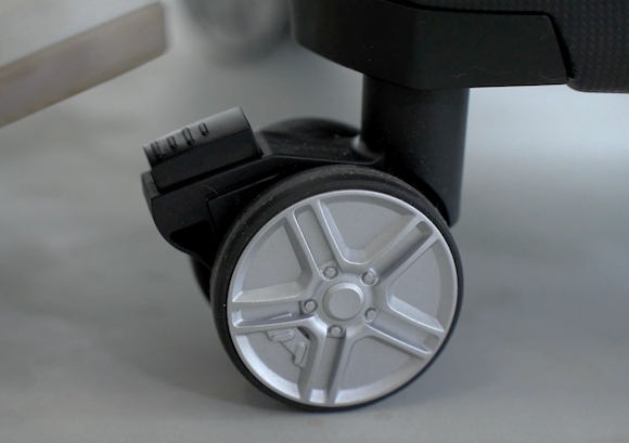 スーツケースが転がっていくのを防ぐため、4個の内2個のキャスターにブレーキ機能がついています。