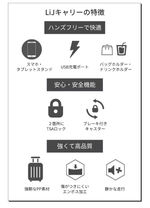 LiJは必需品をスマートに持ち運ぶ、まさに実用性を重視したスーツケースとなります。