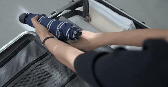 折り畳み傘など洋服と一緒にしたくないものを分けて入れるのもオススメです。