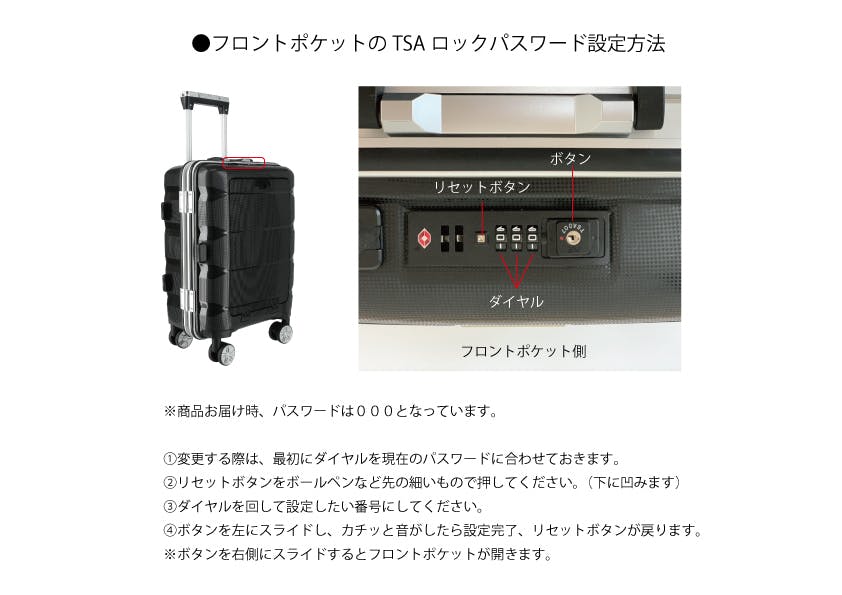 2022/08/27 10:30支援者の皆様フロントポケット部分にあるTSAロックのパスワード設定方法について、日本語の説明書を作りましたので写真をご確認ください。また、フロントポケットが開かない!という方もいらっしゃったのですが、商品お届け時にはパスワードが「000」となっていますので、その番号になっている状態で右側にあるボタンを右側にスライドしてください。(フロントポケット側から開ける場合には右側にスライド、キャリーハンドル側から開ける場合には左側にスライドとなります)よろしくお願い致します。LiF もっと見る