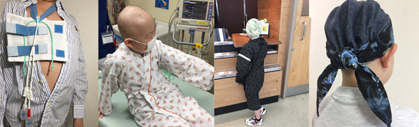 治療上必要だった中心静脈(CV)カテーテルカバーを医療従事者の方とのコミュニケーションツールにしたり、検査着を一日中着て過ごすのは普通の生活ではあり得ないから嫌だと主張したり、外出する際に帽子が服装と合わないから服装に合わせたものを用意して欲しいと言ったり…。