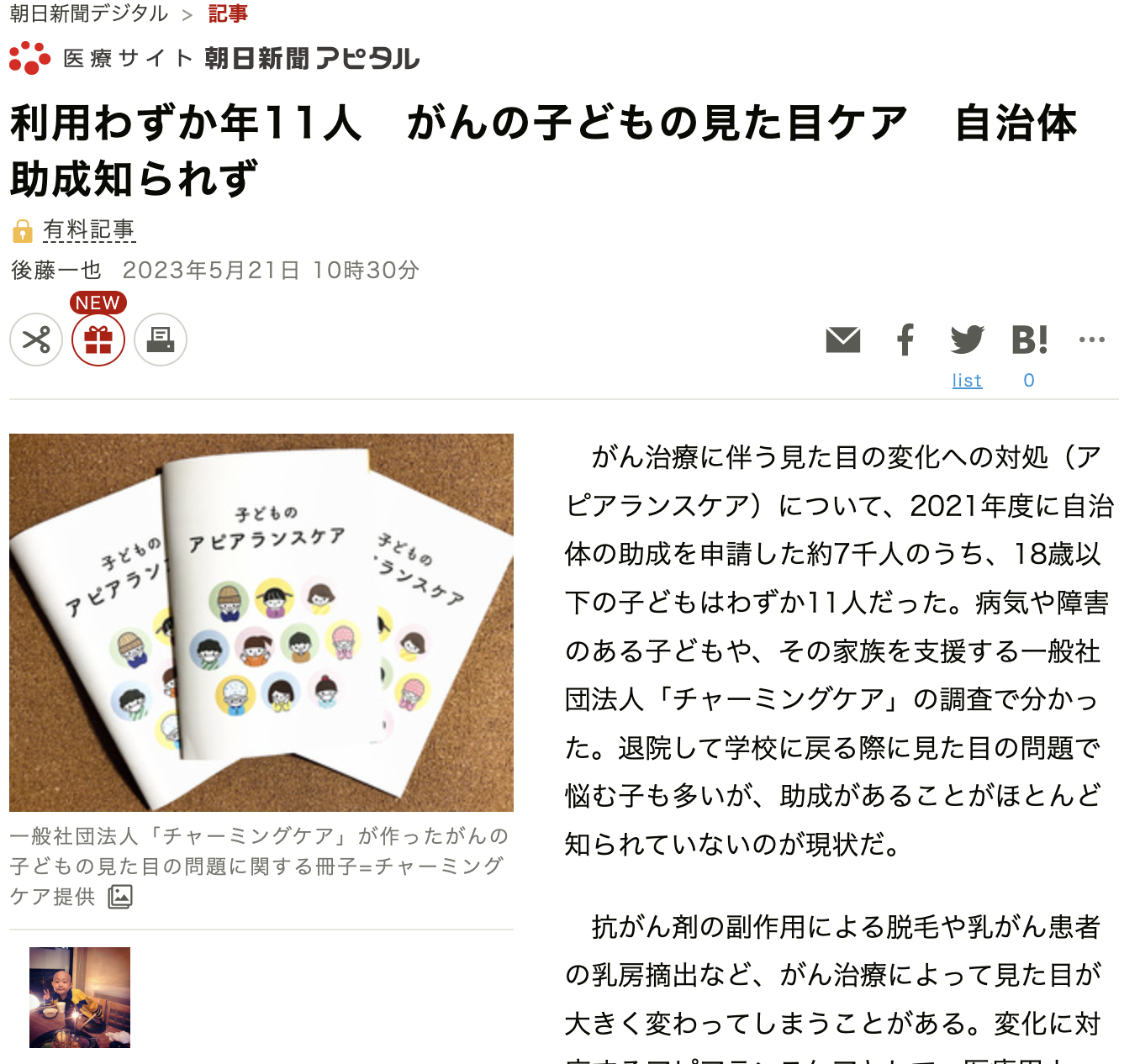 そんなご家族に最初に接する機会が多い人や施設に、チャーミングケア(子どものためのアピアランスケア)の必要性が伝わっていけばと願っています。