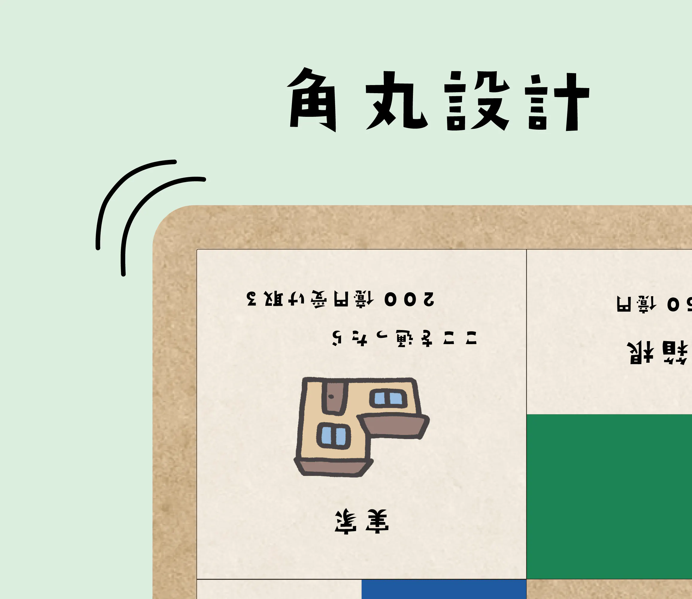 ボードの角を取ることで、優しい雰囲気になるだけでなく、角に傷がつきにくく、長く使えるようになります。