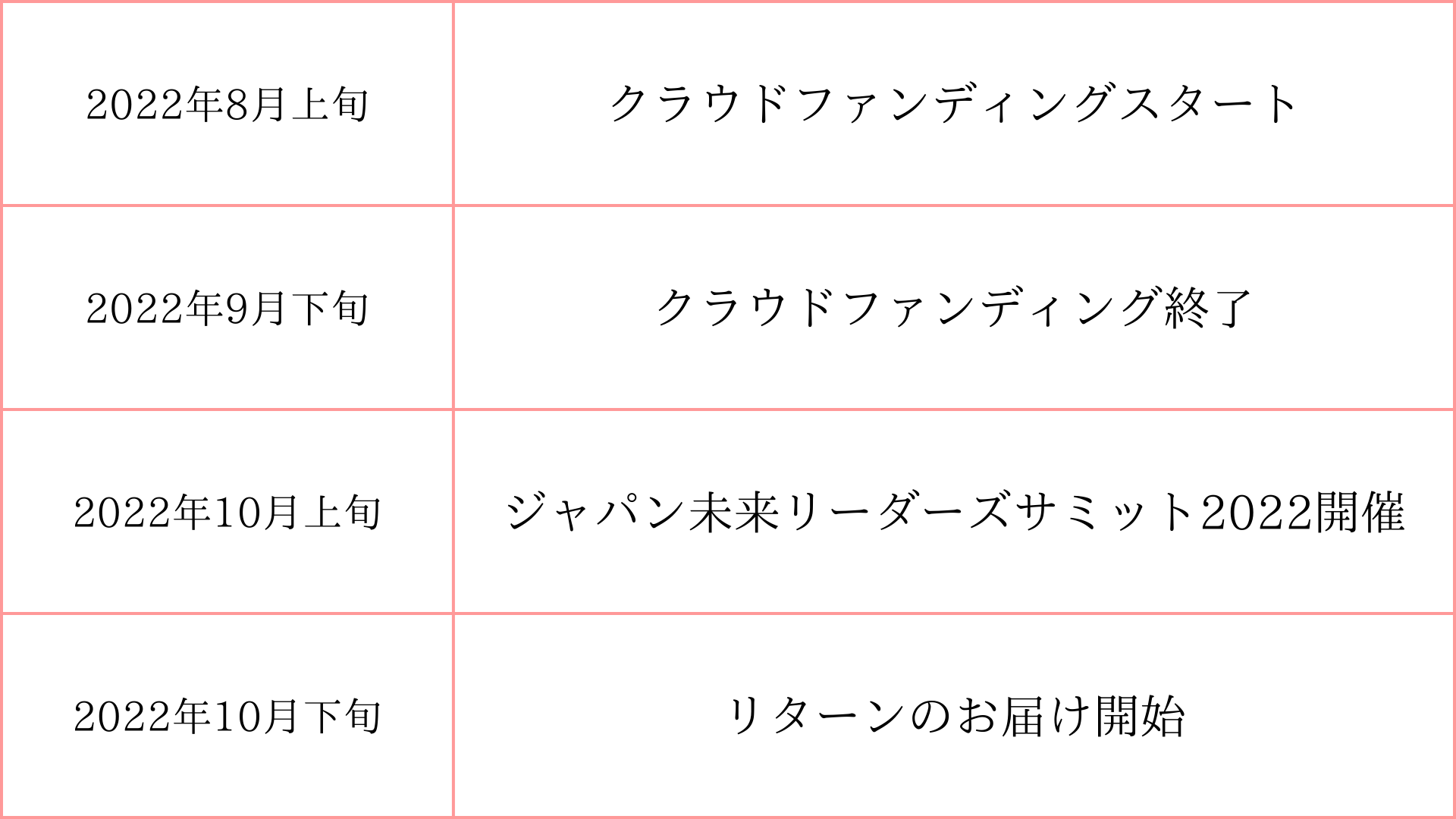 ※コロナウイルス感染拡大の影響で開催中止を余儀なくされた場合には、来年秋開催予定の「ジャパン未来リーダーズサミット2023」の開催費用としてご支援を活用させていただきます。予めご了承下さい。
