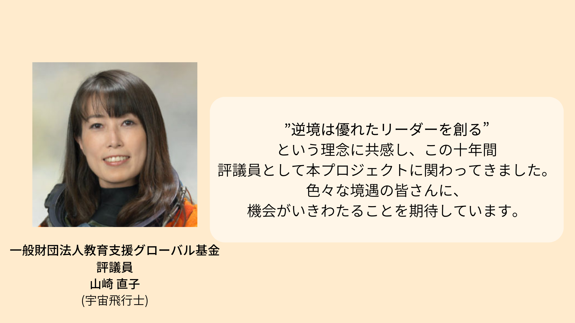 また、当財団評議員の山崎直子さんより応援メッセージが届きました!