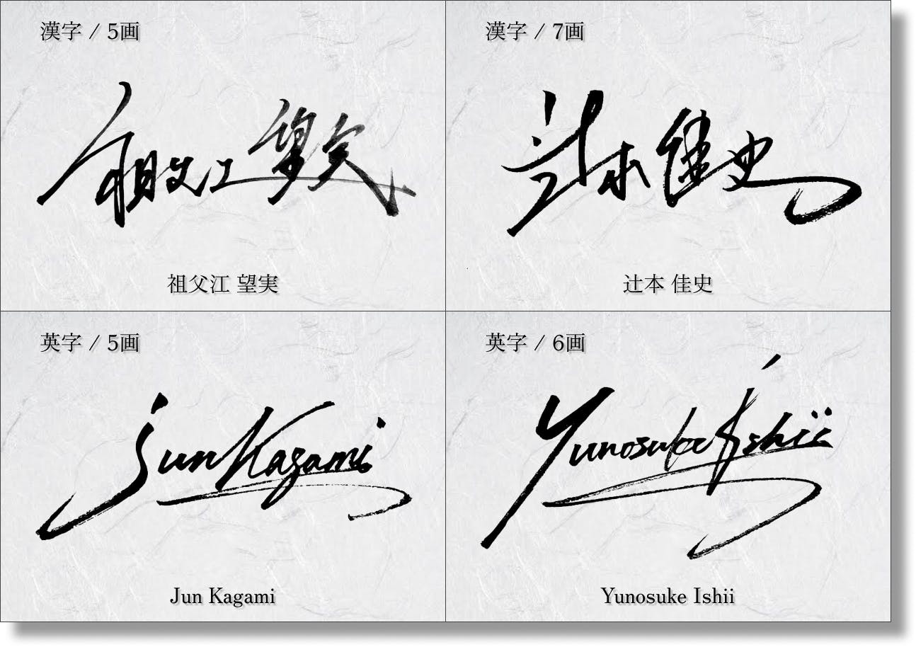 約50,000文字を自在に扱う書道家が、貴方のお名前を吟味し、高品質なサインを作成致します。