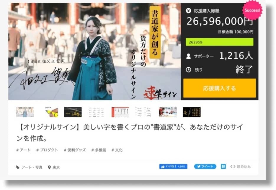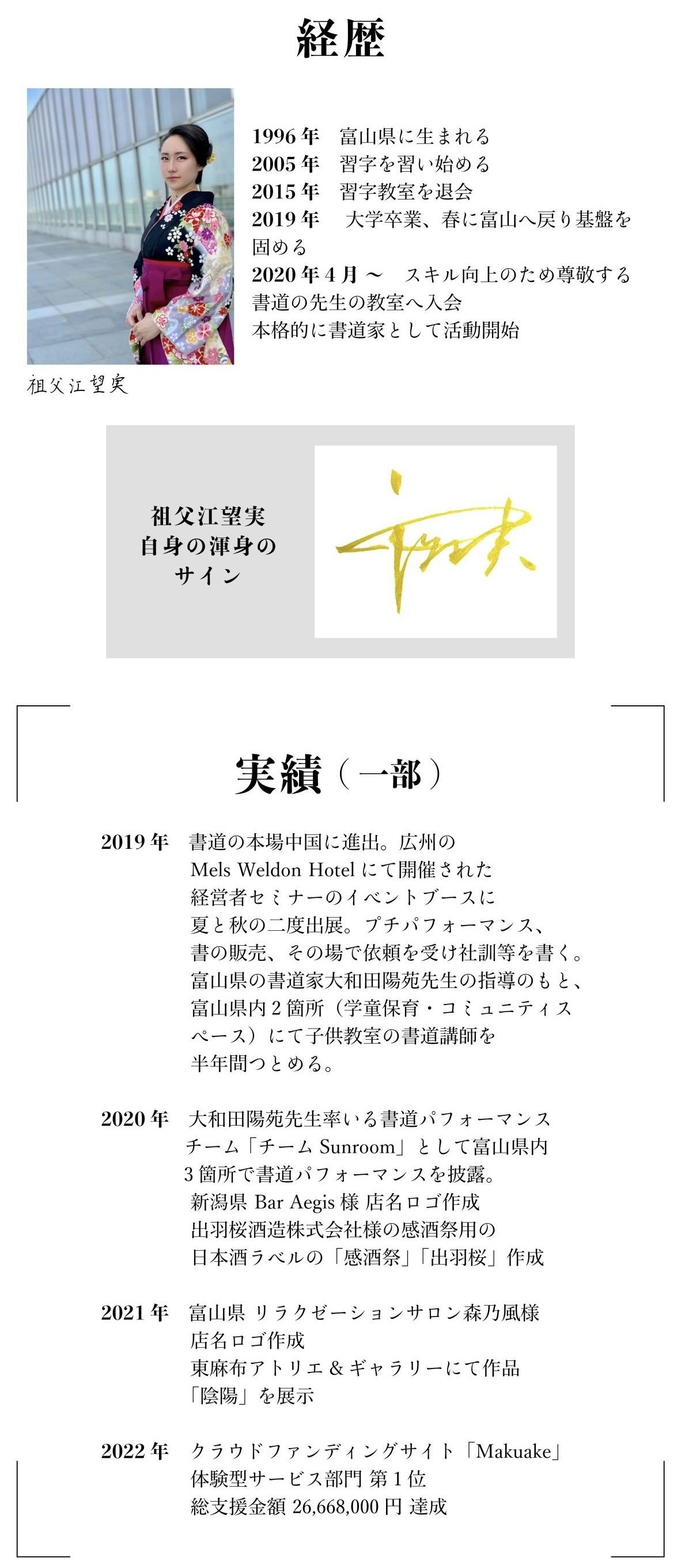 今回、私書道家祖父江望実が、CAMPFIRE / machi-yaユーザーの方々へ向けて、貴方だけのサインを創るオリジナルサイン「速筆サイン」をお届けするために、筆を振るっていきたいと思います。