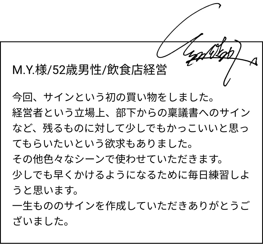 心からご満足いただける、一生もののオリジナルサインとして、愛用いただけることを願っております。