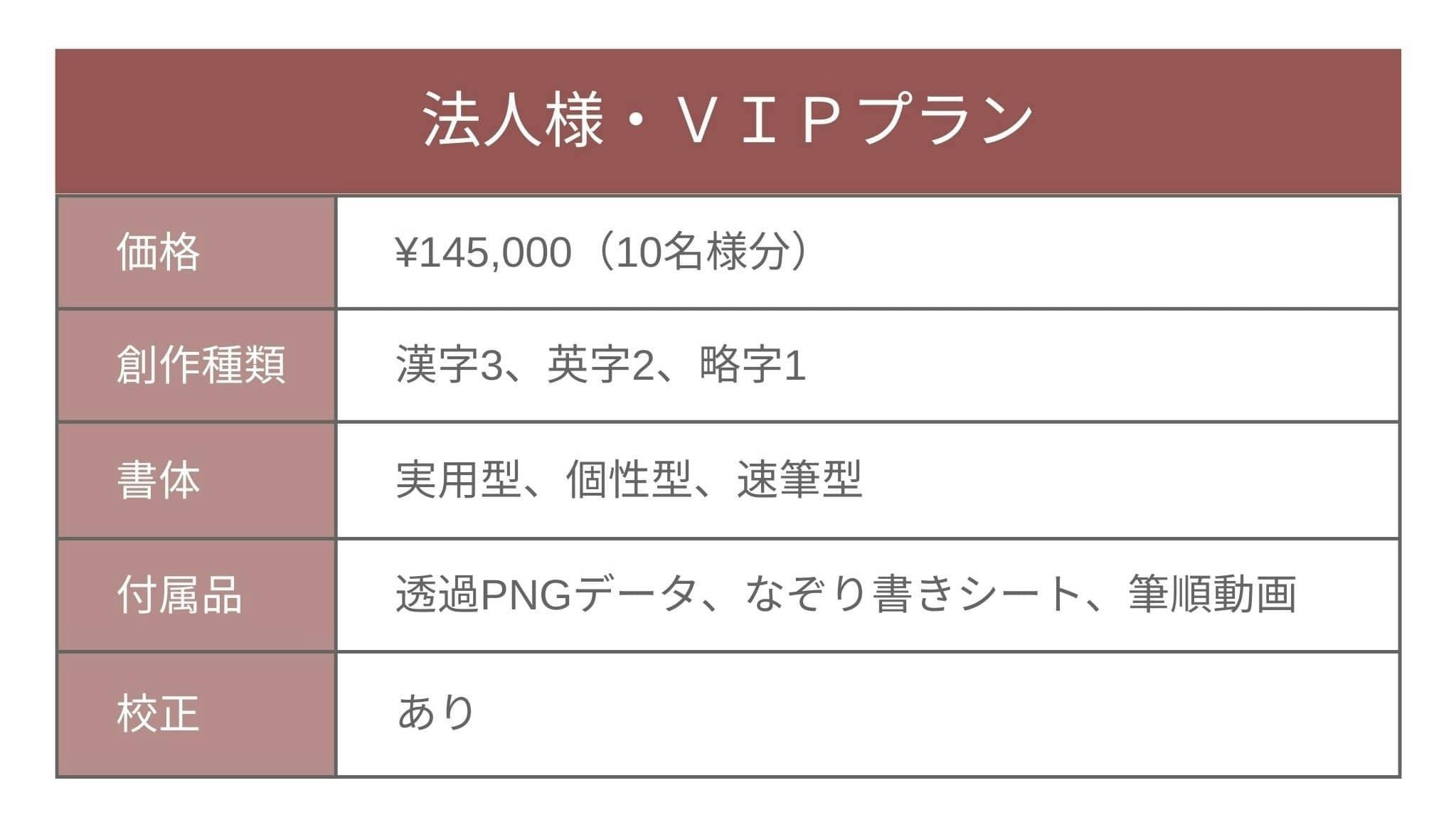 【法人様・VIPプラン(10名様)】 145,000円(税込)