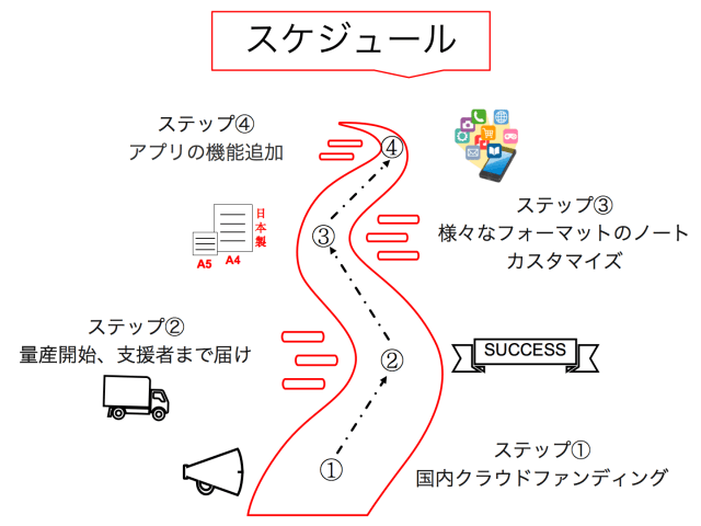 ※今後A5サイズだけでなく、A3やA4サイズなどのサイズ展開や、Googleカレンダーとの連携機能も検討中です。皆様のご支援を元に更なる機能向上を予定しています。