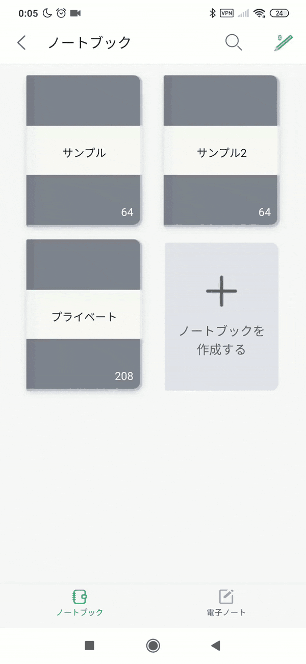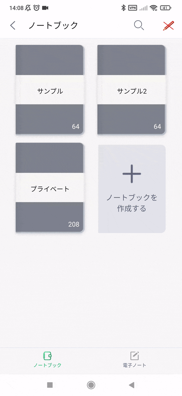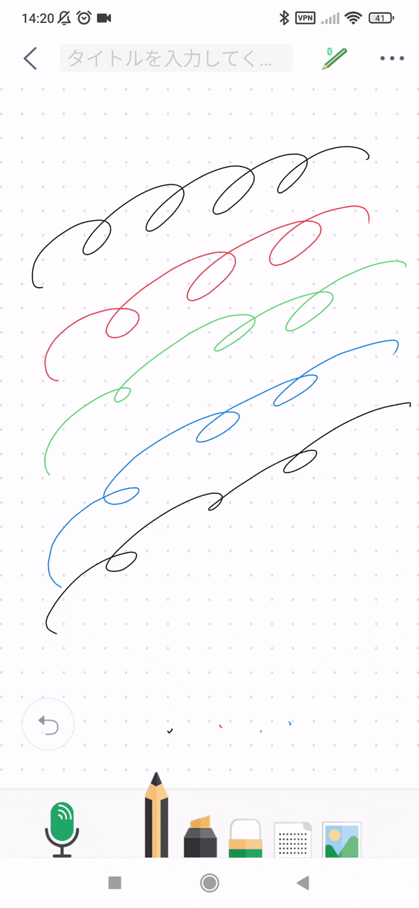 ↓のようにノートの紙面下部のボタンをペンでタッチしても変更できます