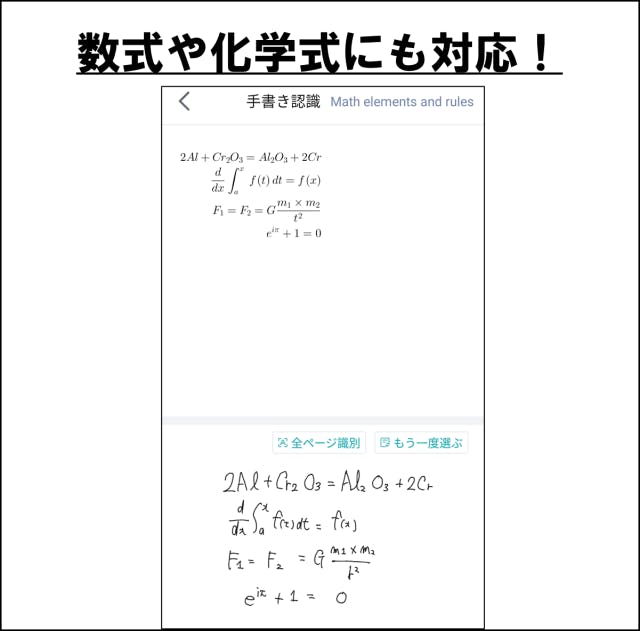 文章の翻訳だけではなく、化学反応式や数式も認識する機能も搭載しています。