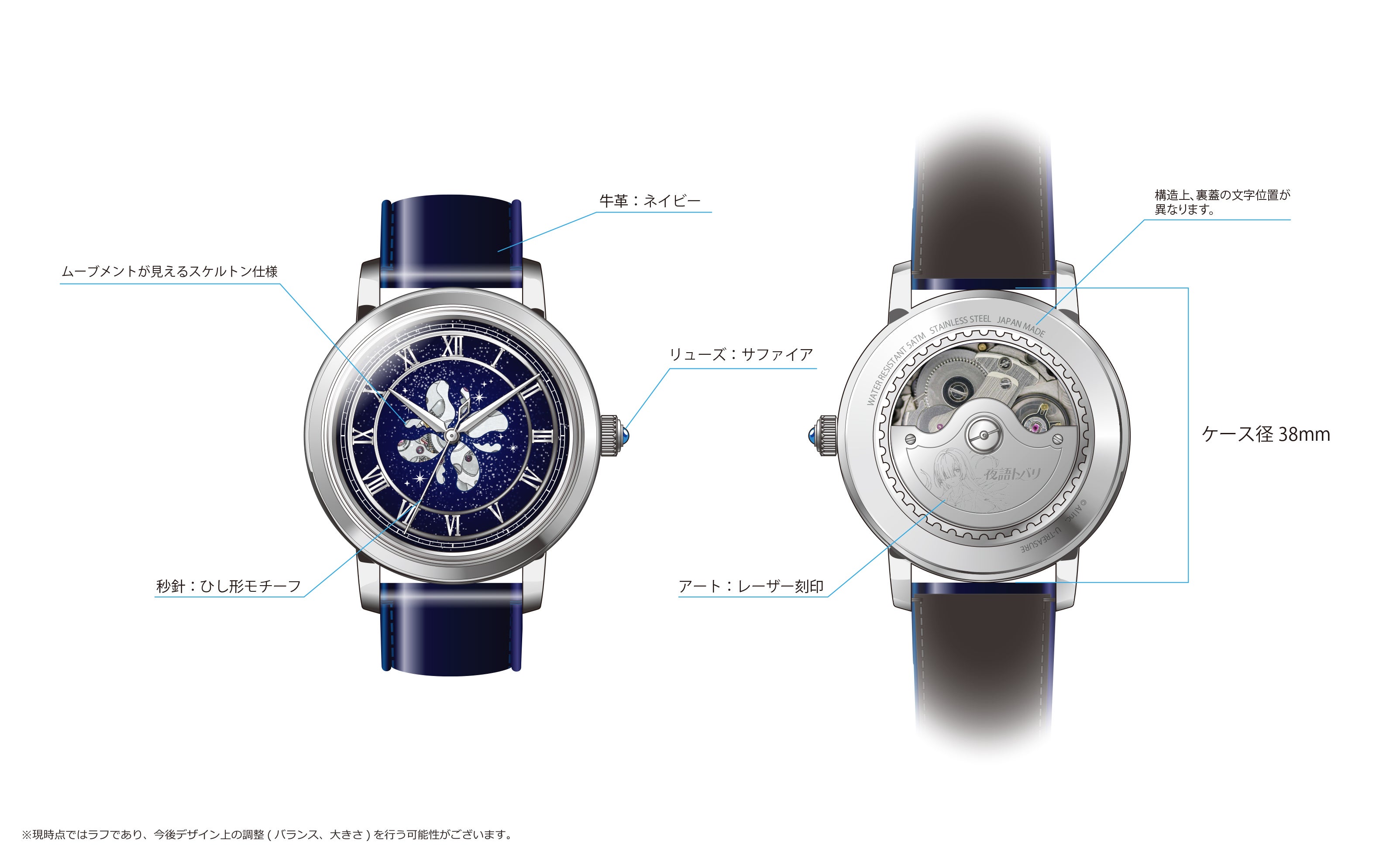 今回は夜語トバリをイメージしたオリジナルデザインの腕時計、ネックレスを製造していただくこととなりました。