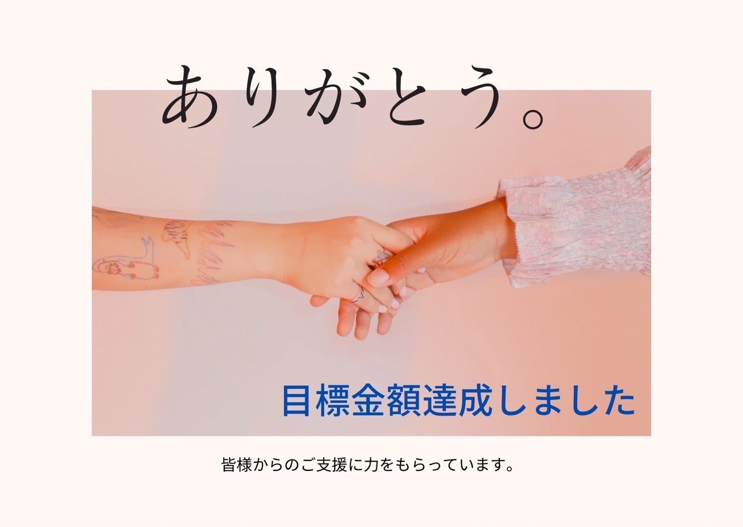 2022/08/23 10:00残り1日を残して目標金額の40万円を達成しました!支援してくださった皆様本当感謝いたします!!!思わず今回協力してくれている仲間にすぐに報告しました。「本当皆様ありがとうございます」「よっしゃー!これでイベント実現だ!!」「大のよろこび」←スタンプなどなど。みんな感謝と喜びでいっぱいでした♡ここにくるまでいろんな方がすごく気にしてくださっていて。あたたかい言葉をかけて応援してくださる方や、目標達成に向けて追加で支援をしてくださる方もいたり。ずっと不安と焦りはありましたが、応援してくれている方たちのおかげであきらめずにここまでくることができました。絶対に来てくれる人たちに楽しんでもらえるいいイベントにしたい!とより力が入る想いです(*^-^*)支援者の方たちには終了しましたら改めてお礼のメッセージを送らせていただきます。残り1日!終了まで本日23:59までとなります。少しでも来てくれる方たちの喜びをみられるイベントになるように☆支援金がどこまで伸びるか残り僅か挑戦してみたいと思います。最後まで応援して頂けたら幸いです。よろしくお願いいたします! もっと見る