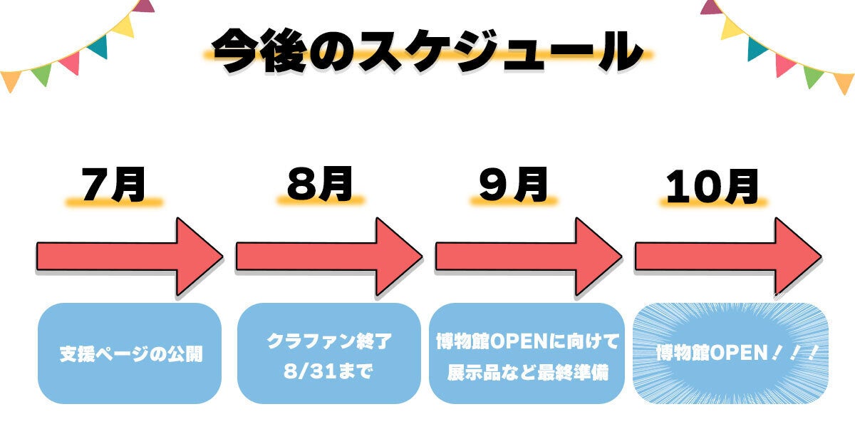 9月:ファンディング期間が終わり次第、ご支援いただいたお金を利用して博物館OPENに向けた