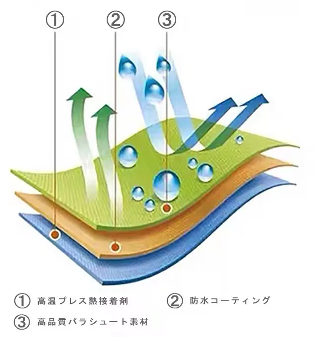 前回と同様の高品質パラシュートで使う優れた生地を使用しており、耐久性、通気性、強度、快適性にとても優れております。