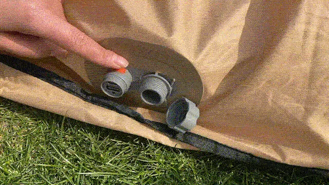 電動ポンプで空気を入れる際は5のキャップを左に回して完全に外してください。
