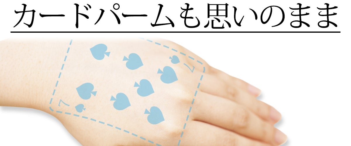 ※カードパームとは…観客にバレないよう、手の平、もしくは手の甲にトランプを隠し持つ事
