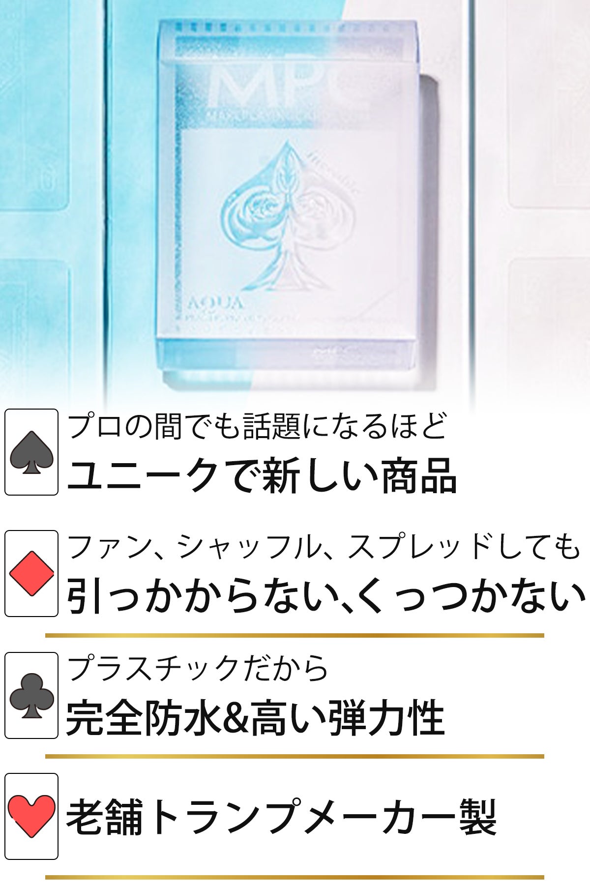 美しく透明なAqua Deckだからこそ、優雅なマジックの流れが完成します。