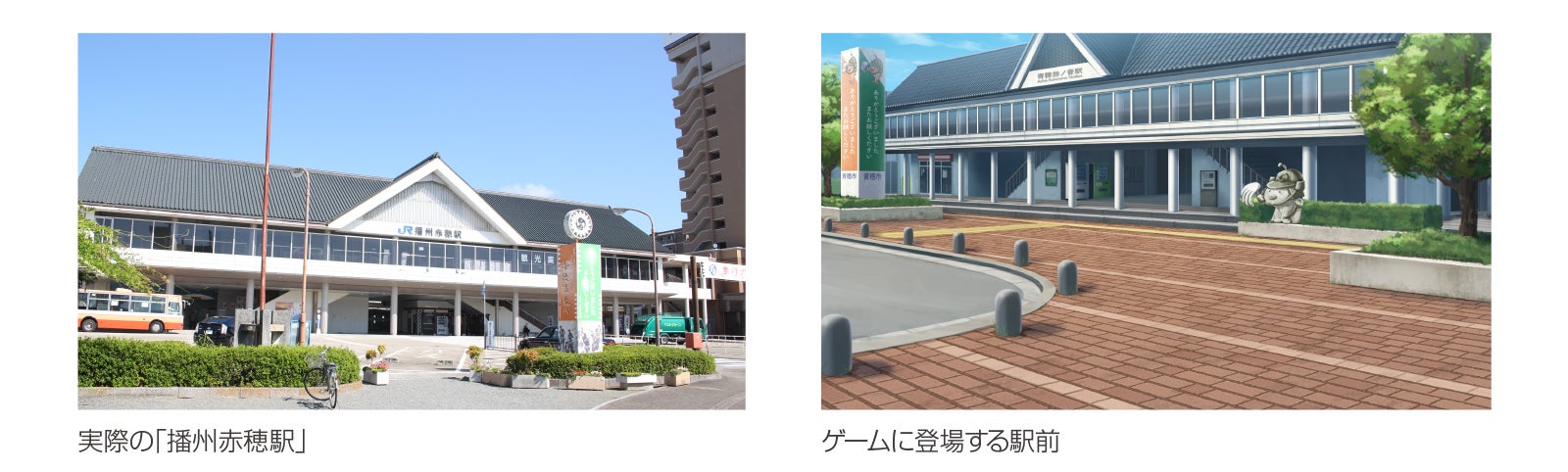 ゲームをプレイしながらリアルな世界観を感じていただくために実際にある兵庫県赤穂市をモデルにして、実際の建物や風景を再現しております。