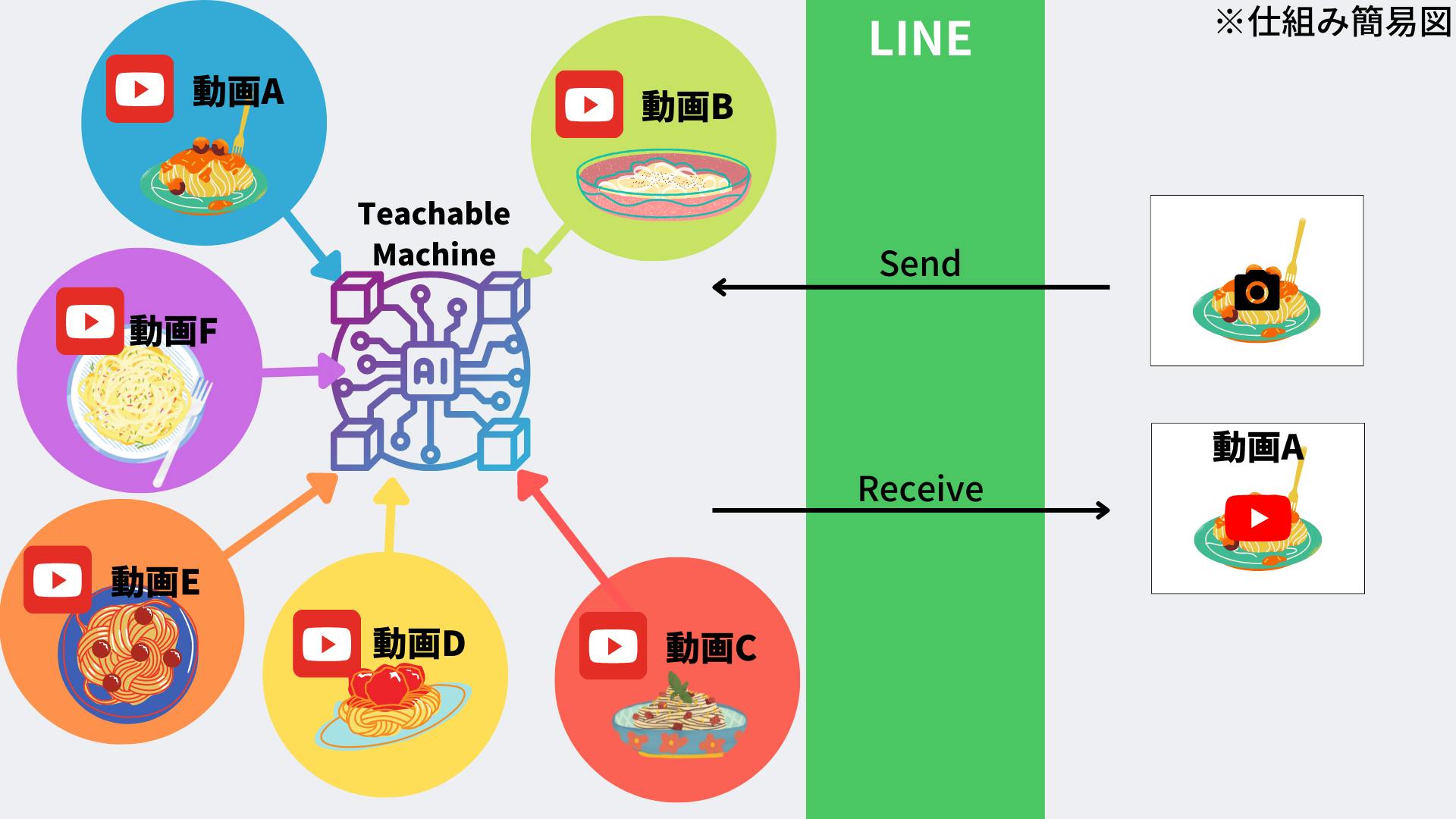 カメラでパスタを撮影して、アプリ(LINE Bot)に送るだけ。レシピ動画がすぐに見つかります!