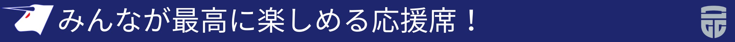 2022年秋シーズンはそんな応援席をさらにさらにパワーアップ!「試合前からワクワク、試合中はエキサイト、試合後は笑顔に」をテーマにオリジナル応援グッズ制作や新演出を通じて【みんなが最高に楽しめる応援席!】を実現します。