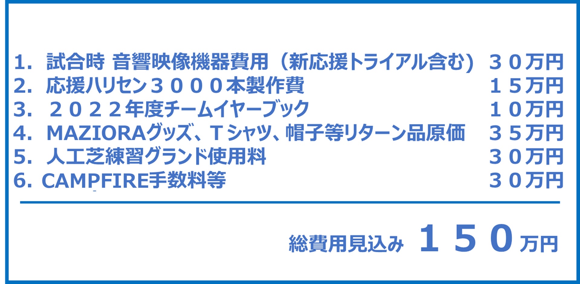 今回のプロジェクトの用途と支援者へのリターンの大前提として、「練習環境を整えて、ベストな状態で選手を送り出し、クオリティの高い、支援者の方の心に響く試合を見せ、勝利を掴む」ということがあります。