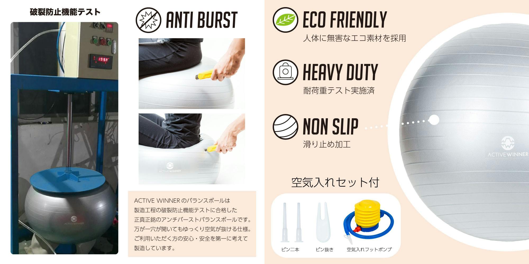 そして、どんな人でも安心して使えるようにバランスボールをはじめとする各パーツを